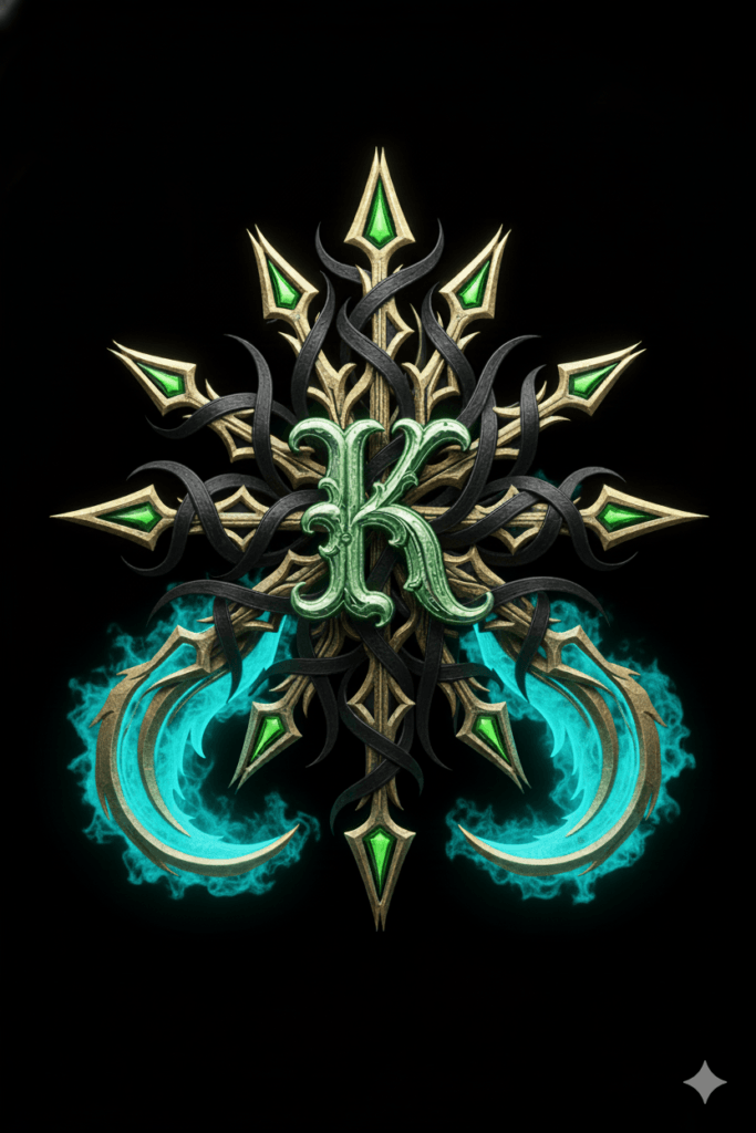 The Sigil of Kitsune is an identity shield — a mark of the conscious architect in an age of generative ghosts. This emerald monogram, woven into interlocking patterns of gold and obsidian, carries the doctrine of the hidden tail and the mastered mask. It signals a mind that can navigate the “Fox’s Wedding” of the modern tundra without surrendering its original face.