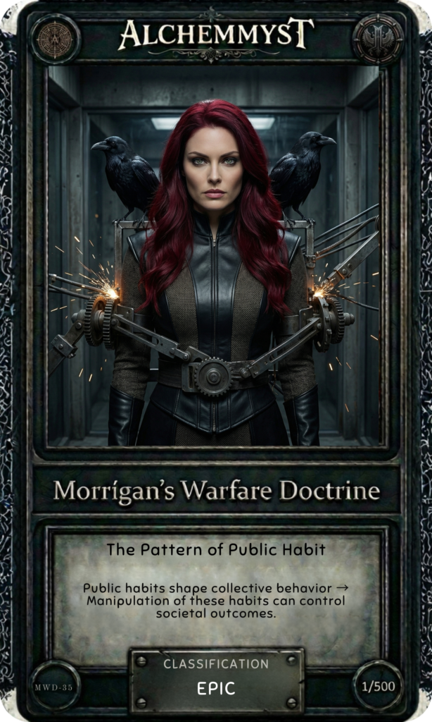 The Morrígan’s teaching is not paranoia. It is calibration. The question is not whether you have public habits — everyone does. The question is whether those habits are so consistent that they have become the primary channel through which others anticipate and shape your behavior. If the answer is yes, the counter-move is not elimination. It is variation — small, deliberate, and sufficient to deny the confirmation the model requires.